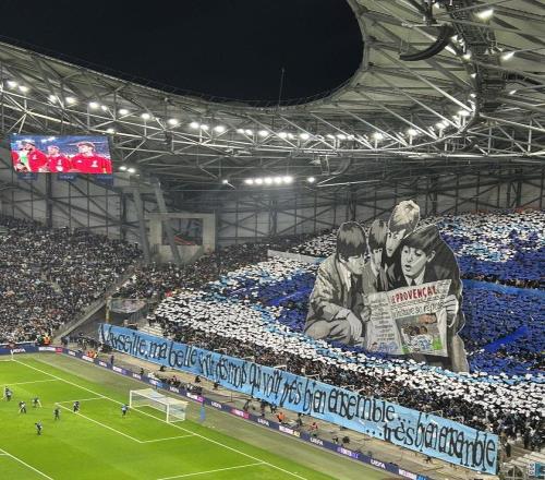 本场比赛在马赛主场韦洛德罗姆球场进行,赛前,球场看台打出了一幅巨型TIFO,TIFO上画的是四名年轻男子围在一起看报纸,明显致敬的是披头士乐队早期形象。